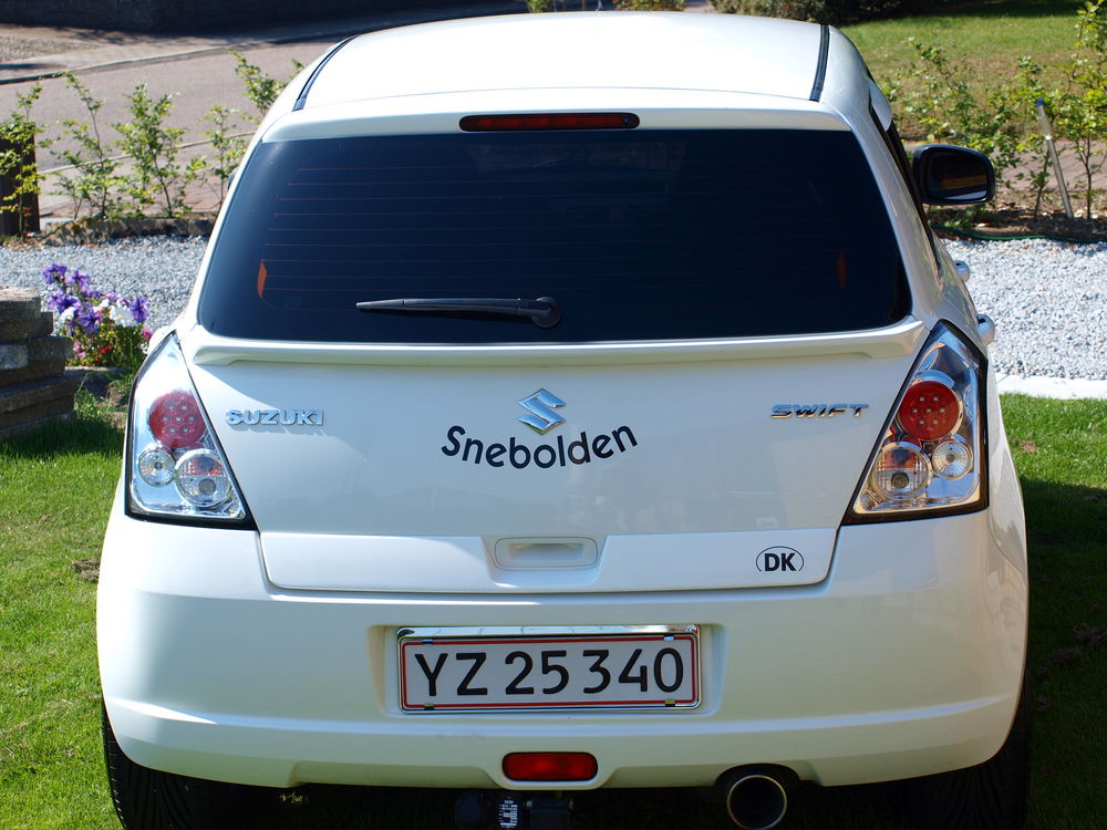 Fed ide med vindafvisere i bilens farve! Fælgene passer overraskende godt til en hvid bil.